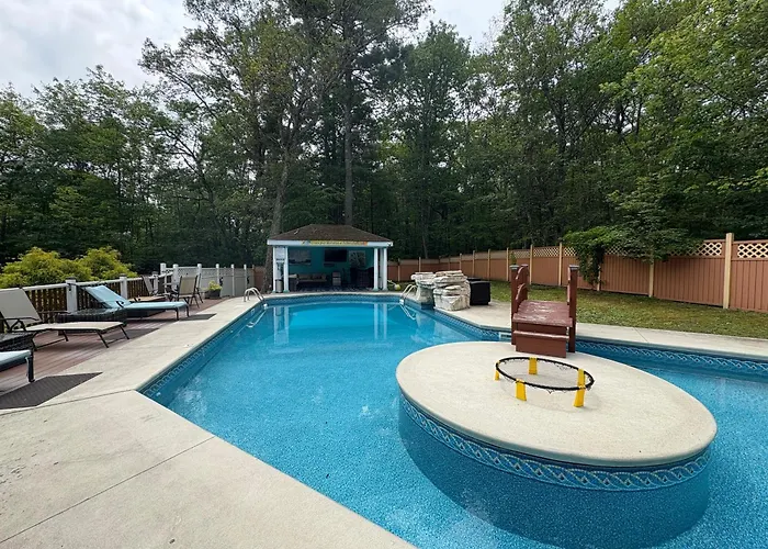 Die fünf geräumigen Schlafzimmer des Cheerful 5-Bedroom Resort With Heated Pool East Stroudsburg sind geschmackvoll eingerichtet und bieten eine gemütliche Atmosphäre. Jedes Zimmer verfügt über hochwertige Betten, stilvolle Möbel und moderne Annehmlichkeiten, die für ein unvergessliches Erlebnis sorgen. Die großen Fenster ermöglichen einen herrlichen Blick auf die umliegende Natur und garantieren viel Tageslicht.